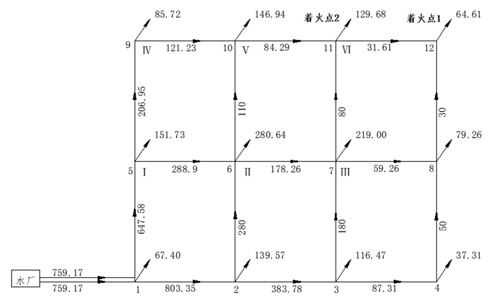 根据以上流量分配原则、流量计算公式以及用水量情况,对园区供水管网进行节点流量计算以及流量的具体分配,具体分配结果详见设计计算书。