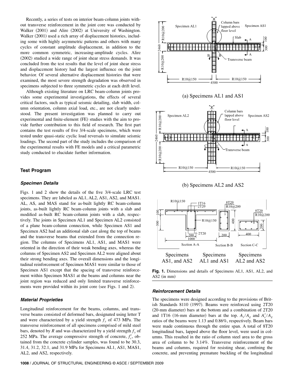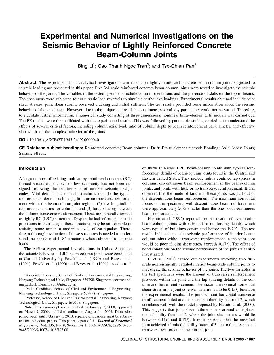 轻型钢筋混凝土梁柱节点抗震性能的试验和数值研究外文翻译资料