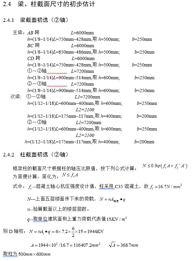2.4 梁、柱截面尺寸的初步估计 - 7 -
