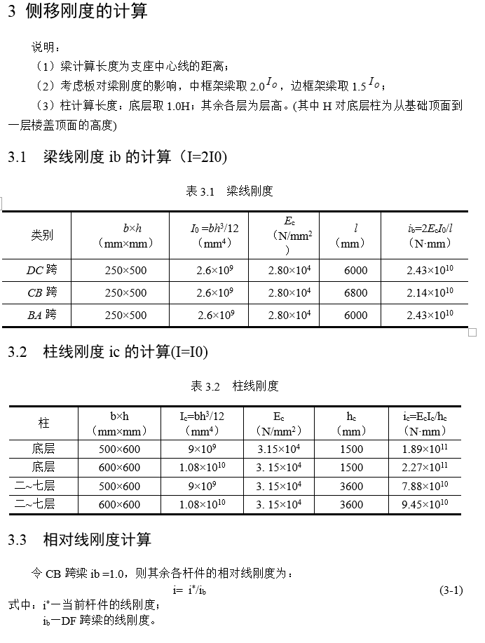3.2 柱线刚度ic的计算(I=I0) - 9 -