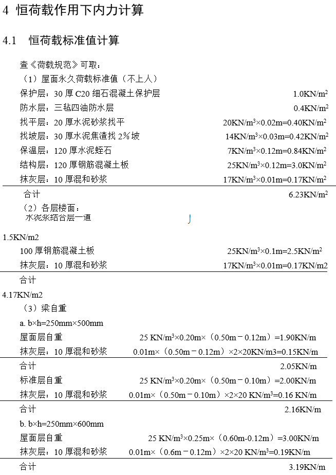 抹灰层:10厚混和砂浆 17KN/m3×0.01m×0.6m×4=0.41KN/m