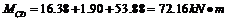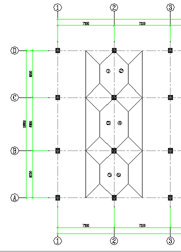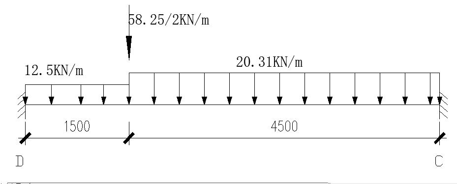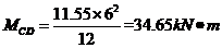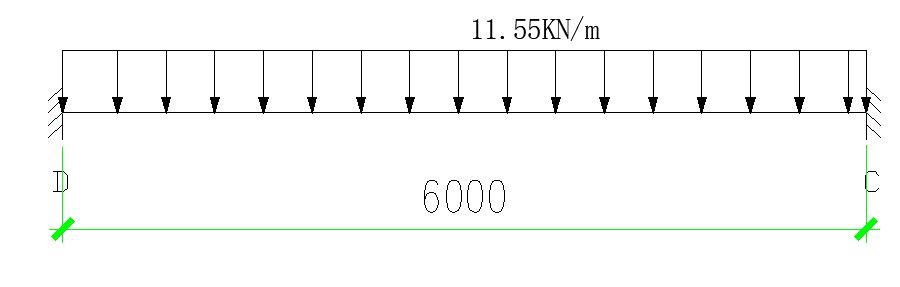 ①、②板传至CD跨梁的的三角形荷载可等效为: