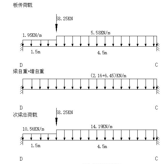 (注:梁上的均布荷载是由梁中荷载等效而来)