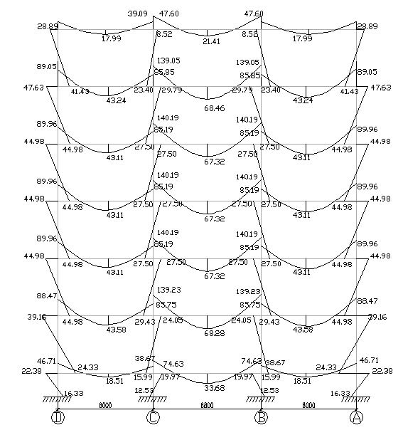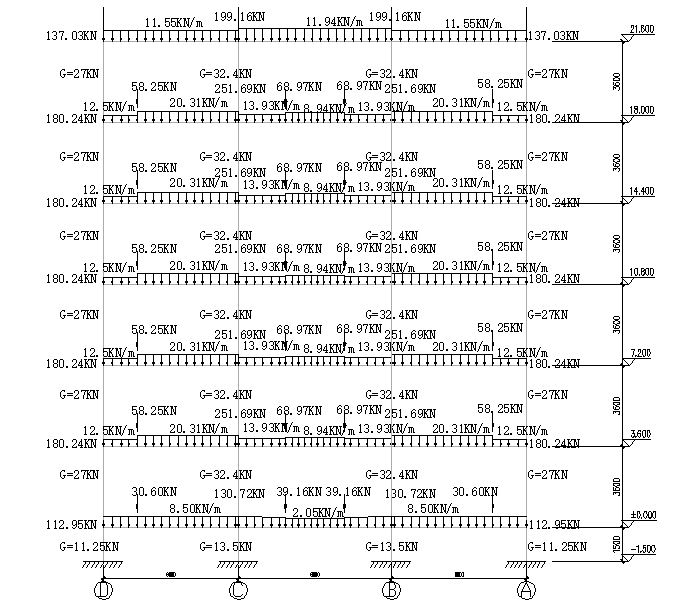 杆件 | CB跨梁 | DC跨梁 | BA跨梁 | 底层 边柱 | 底层中间柱 | 二~七层边柱 | 二~七层中间柱 |