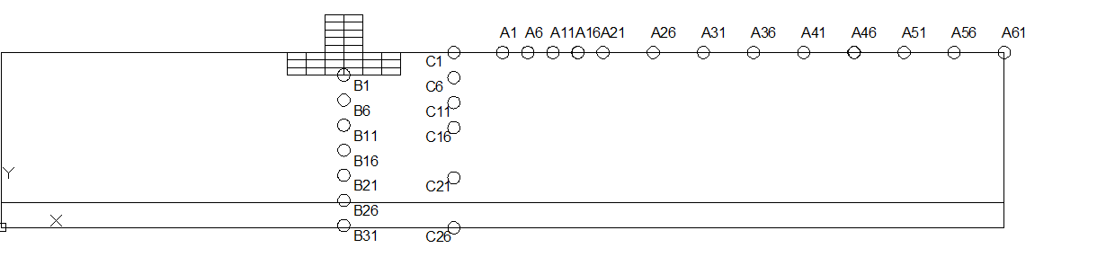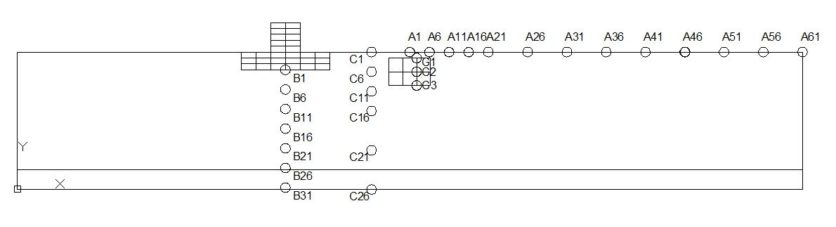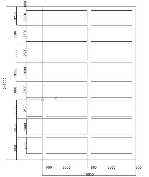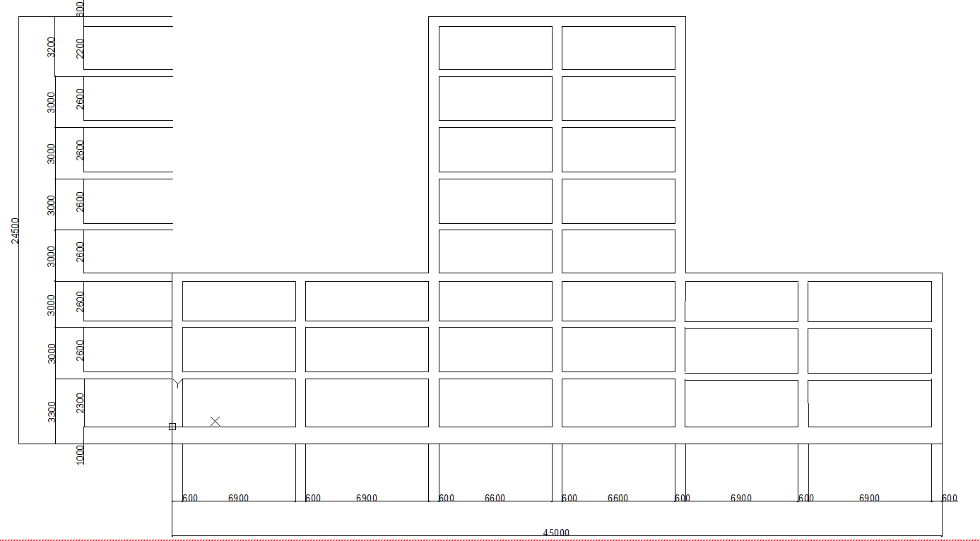 为了分析带地下室结构的影响,在地表五层框架结构一下增加一层15m宽、一层45m宽、三层15m宽、三层45m宽的地下室结构。地下室同样采用最常见的框架结构,具体参数如下:框架柱的截面尺寸600mmtimes;600mm,顶板厚度600mm,楼板厚度400mm,底板厚度1000mm,侧墙厚度600mm,混凝土C30强度等级。地表结构如图2.1所示: