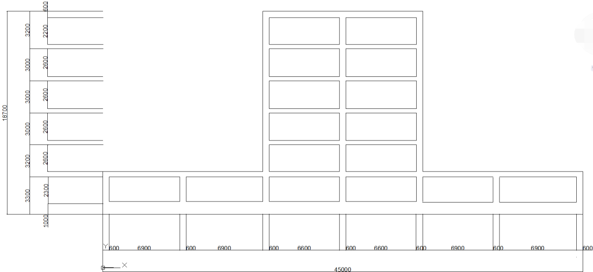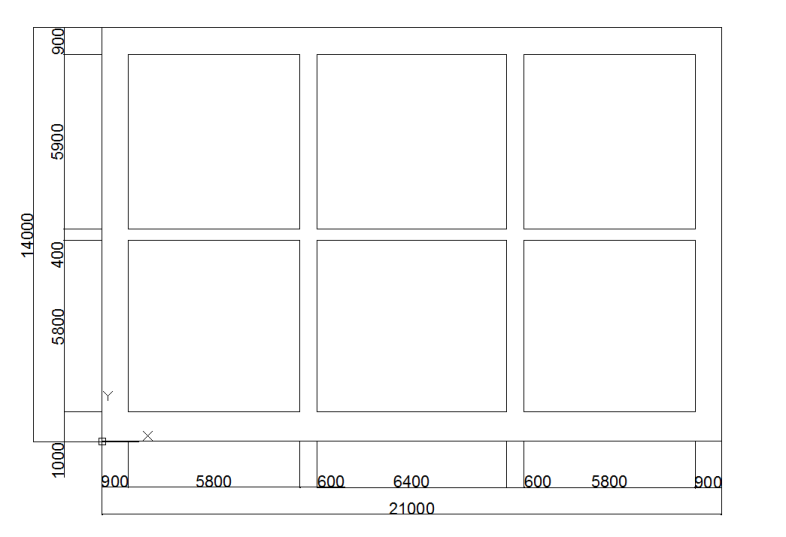 地下结构为两层三跨的框架结构,车站横向宽度21m,每跨跨度7m,层高7m,顶板距离地表埋深3m,混凝土柱尺寸为600mmtimes;600mm,柱子纵向间距9m,车站侧墙和顶板厚900mm,中板厚400mm,底板厚1000mm,混凝土采用C30强度等级,如图2.2所示: