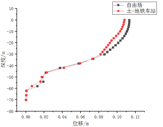 ② The larger the size of the basement, the greater the seismic response of the underground structure. The depth is the main influencing factor under hard soil conditions, and the width is the main influencing factor under soft soil conditions.