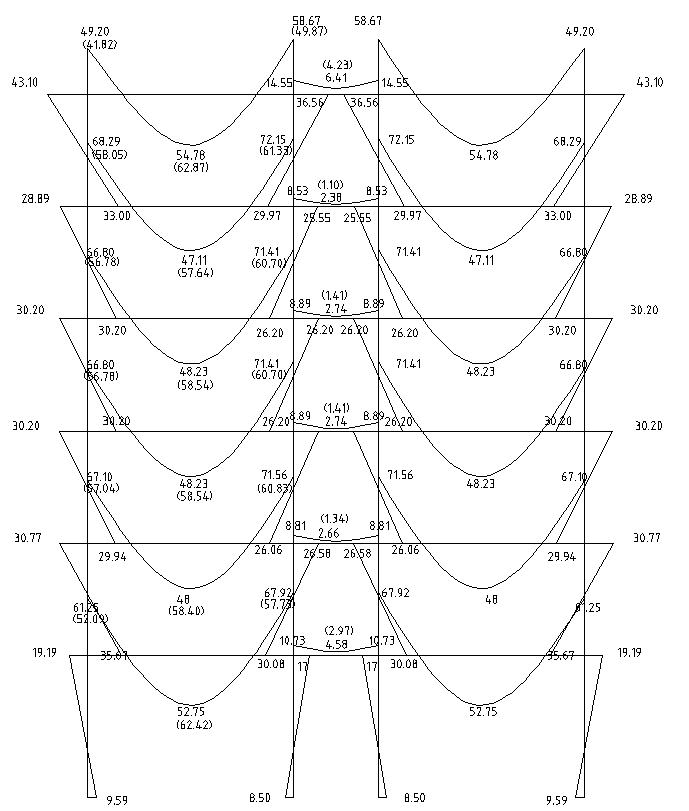 本次设计书的目的主要是为了增强自己的手算能力和理解在进行结构设计时的思路与掌握各种计算方法,并区别它们。本文主要涉及到了截面的估算、梁柱荷载的计算、梁板柱的内力组合与最不利截面、梁板柱的配筋及构造要求、楼梯和基础的设计这几个方面来写的。在进行截面估算时,采用教科书的估算公式;在进行框架的竖向荷载导荷是把框架当做平面结构导荷,并没有考虑结构的空间效应,简化了计算;计算地震效应运用剪力分配法计算,能量法计算自振周期;对于梁柱的弯矩分配采用的是二次弯矩分配法;板则采用塑性理论计算方法;基础方面则采用独立柱基,考虑它的冲切验算。