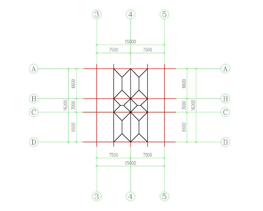 楼盖及屋盖均采用现浇钢筋混凝土梁板结构,由于板的跨度过大故设置次梁,区格板的边长比6.6/3.75=1.76,应按双向板计算。楼板厚度≥L/40=3750÷40=93.75mm,楼板厚度取120mm。梁截面高度按梁跨度的1/12~1/8估算,梁宽取截面高度的1/3~1/2,各层梁截面尺寸见表2.1。