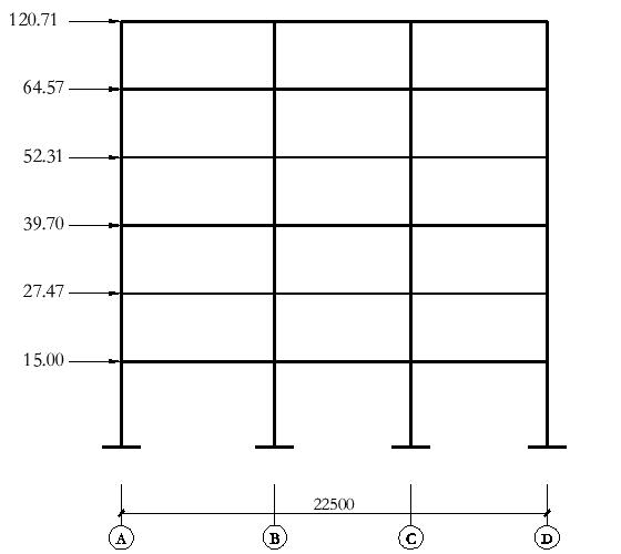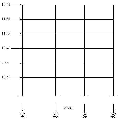 图2-2 ⑤轴框架计算简图(单位:mm)