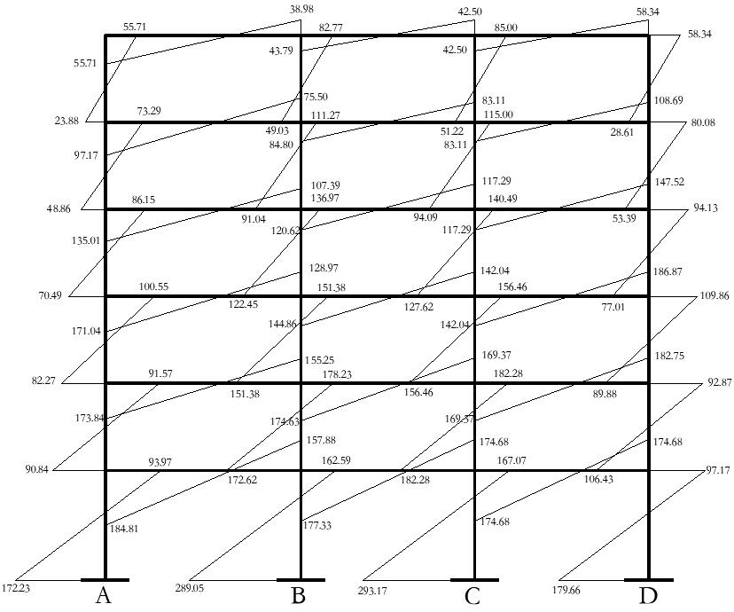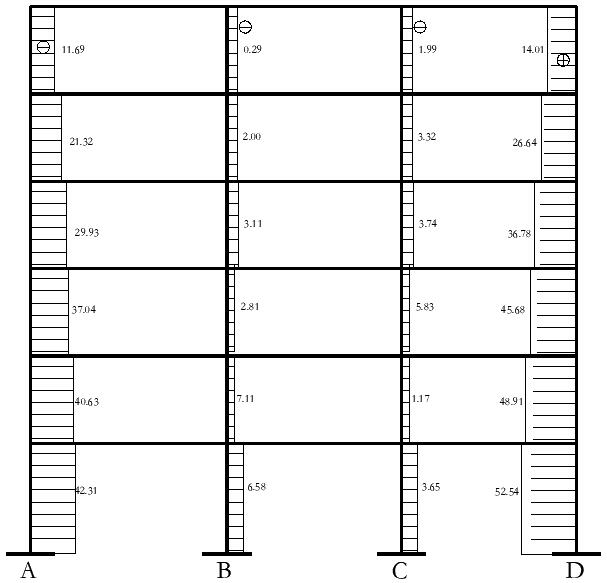 框架梁的线刚度,在现浇混凝土结构中,考虑板作为翼缘,对中框架取,对边框架取,其中为矩形截面梁的截面惯性矩,计算结果见表3-1。框架柱的线刚度,计算结果见表3-2。