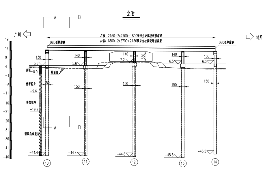 - 上部结构设计:单侧桥宽16.25m。主梁采用后张法预应力混凝土现浇,C50混凝土,梁高1.6m。