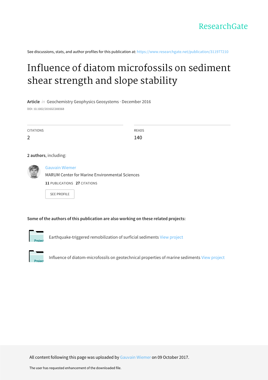 硅藻微化石对沉积物抗剪强度和边坡稳定性的影响外文翻译资料