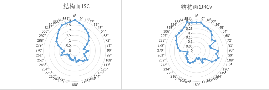 (2)通过3D扫描获取3块不同的自然结构面的点云数据,通过编程计算40个方向上描述结构面形貌的参数SC3D和JRCv,并制作雷达图来展现结构面形貌的各向异性。应用各向异性系数DAC和各向异性参数Ka来定量分析结构面的各向异性,研究发现3块结构面都具有很明显的各向异性特征。