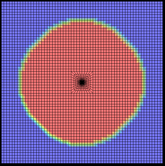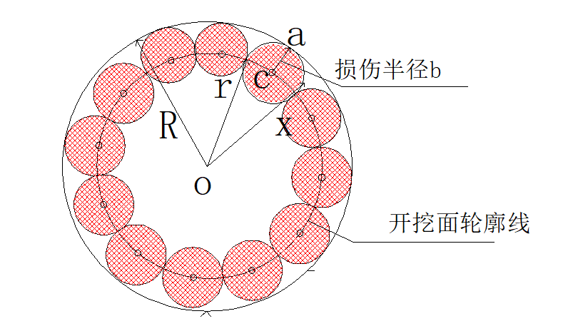 该假说认为,炸药爆炸时会产生压力巨大的爆生气体,气体向炮孔壁做功,在周围的岩石介质中形成一个高应力场,使得岩石介质发生径向位移。其中,若是由于径向位移导致的切向拉应力超过了材料的抗拉强度,则岩石发生破坏并产生垂直于切向拉应力方向的径向裂缝;而在阻力不同的径向方向上,由于介质的位移速度不同,会在其中产生剪切应力,若超过岩石的抗剪强度,则会导致剪切破坏。