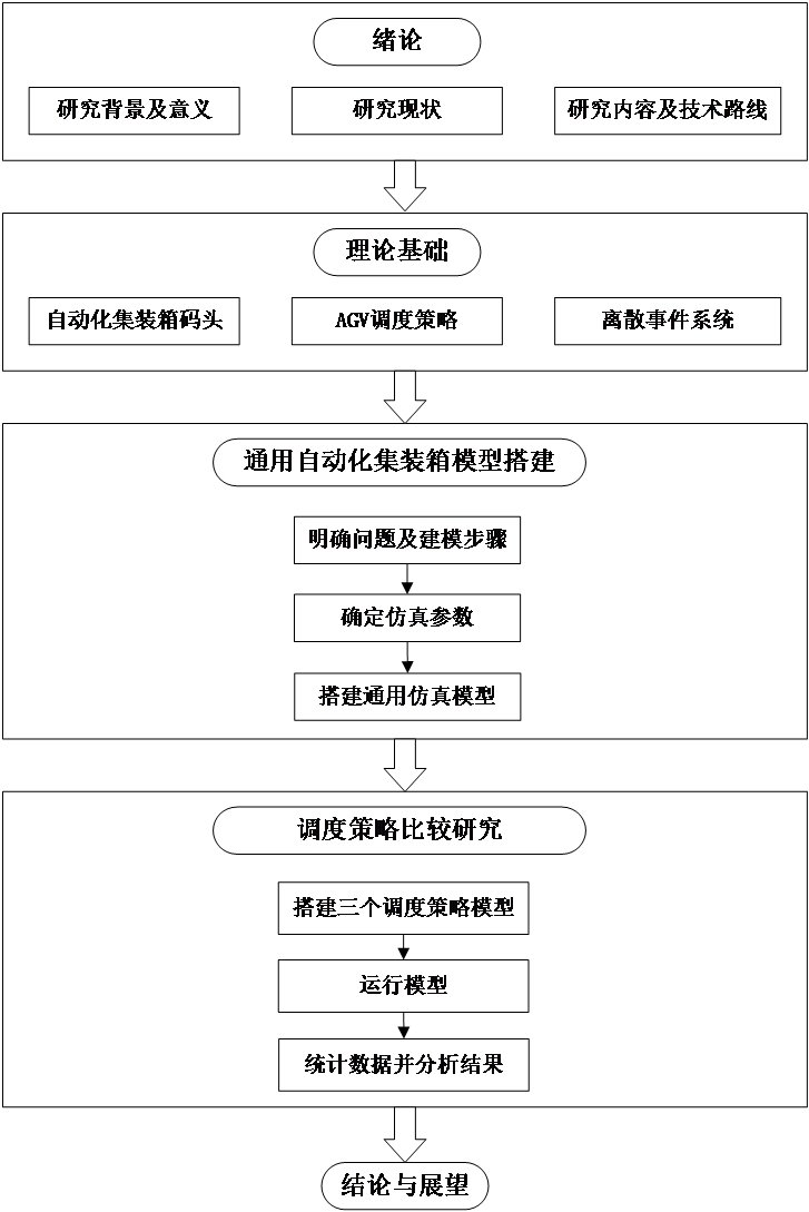 通过研究国内外的文献,发现目前国内外对于自动化集装箱码头的研究主要集中在排队模型、装卸工艺、临时发生的应急事件和码头后方堆场的优化方面,对于AGV调度方面的研究多集中于AGV与岸桥的配比和智能AGV调度算法。