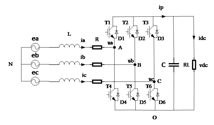 船舶岸电技术的出现很好的减缓了船舶在港口停靠期间因使用辅助柴油发电机所产生的废弃物的排放。船舶岸电技术是指到港船舶在港口或码头停泊期间,关闭用于照明、通风、冷却、加热、通讯、装卸需要的辅助发电机,而由港口提供的岸电电源向其供电[5]。这一措施不仅极大的减少了对港口城市污染物的排放,还提高整体的能量利用效率,对加快我国“资源节约型”和“环境友好型”社会的建设有着极大帮助。我国相对其他国家而言,在港口船舶岸电技术的研发和实施方面起步较晚,而且不同港口对船舶岸电的需求程度也不尽相同,但都会面临一个相同的问题,即由于我国电网的标准电压和频率与大多数国外的标准相差甚远,因此在使用船舶岸电电源向外来船舶供电时需要将我国380V/50Hz的交流电通过岸电电源的变流器系统转换为440V/60Hz的交流电[6]。船舶岸电电源系统中的变流系统是船舶岸电的核心部分,因此对船舶岸电的变流系统的研究就显得尤为重要,本文主要针对船舶岸电整流系统的控制策略进行研究,寻求合适的控制策略并通过MATLAB/Simulink仿真模拟验证其控制策略的正确性。