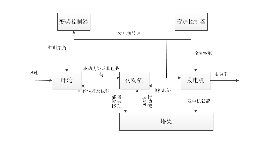 图3.1 变桨变速风力机主要部件关系图