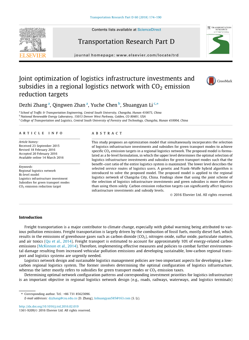 联合优化区域物流网络中的物流基础设施投资和补贴,实现二氧化碳减排目标外文翻译资料