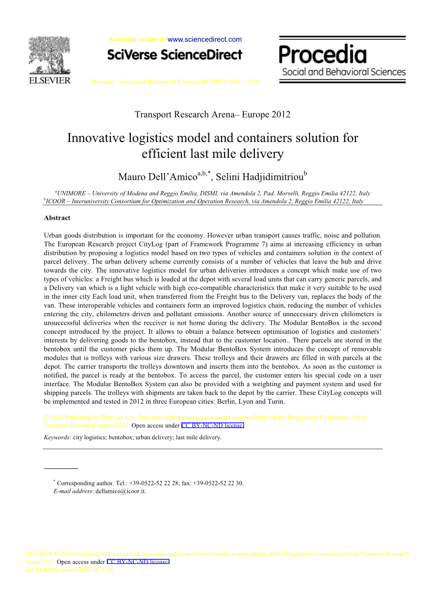 今天的城市货运分配体系由许多辆货车直接向客户提供货物。 运输经营者通常通过划分城市区域来组织交货。 仓库通常位于顾客附近,但位于市中心之外。 如果交货不成功,一般情况下,客户需要到就近仓库选择他的包裹。